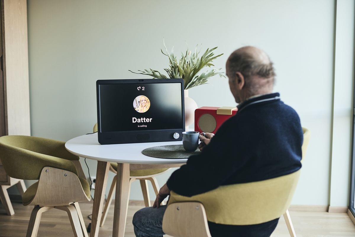 Enkel og trygg enknappsskjerm hvor venner og familie enkelt kan overføre bilder og ringe til skjermen fra app. Bidrar til å opprettholde/ivareta sosial kontakt med venner og familie.